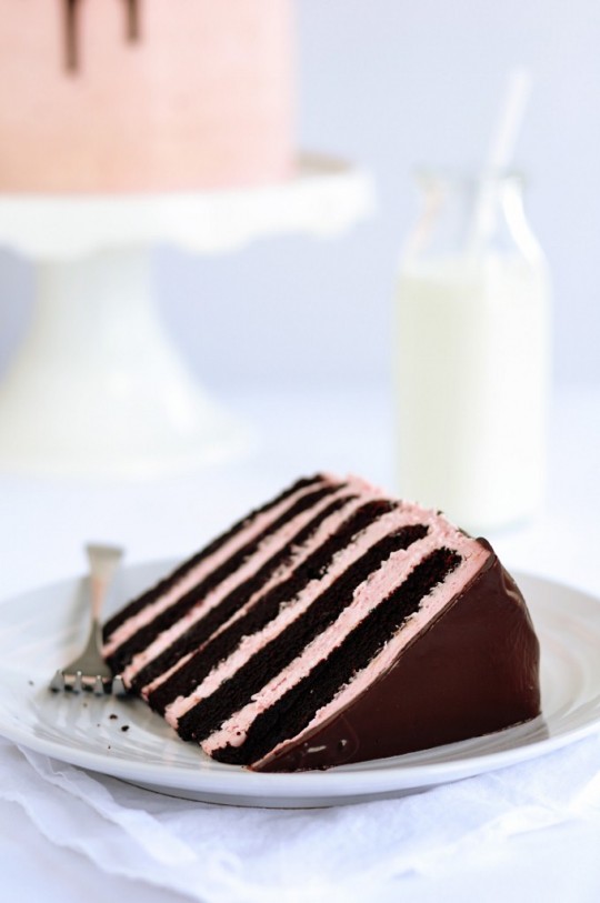 Six-Layer Dark Chocolate & Strawberry Buttercream Cake